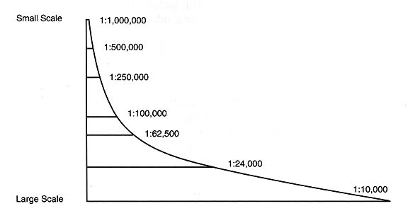 - Scale - 1:24,000 means 1 unit = 24,000 real world units
